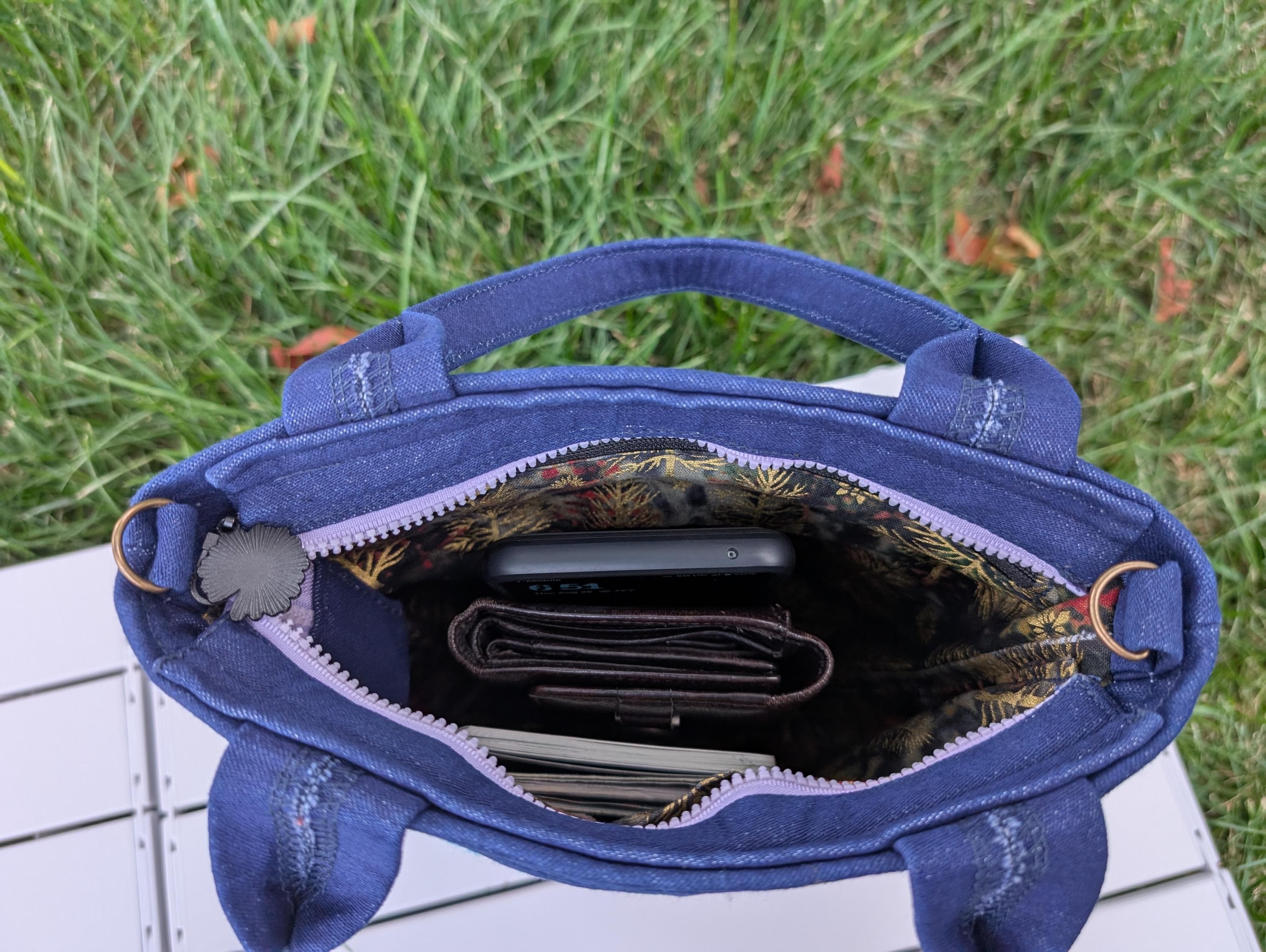 Zipper on top of bag.