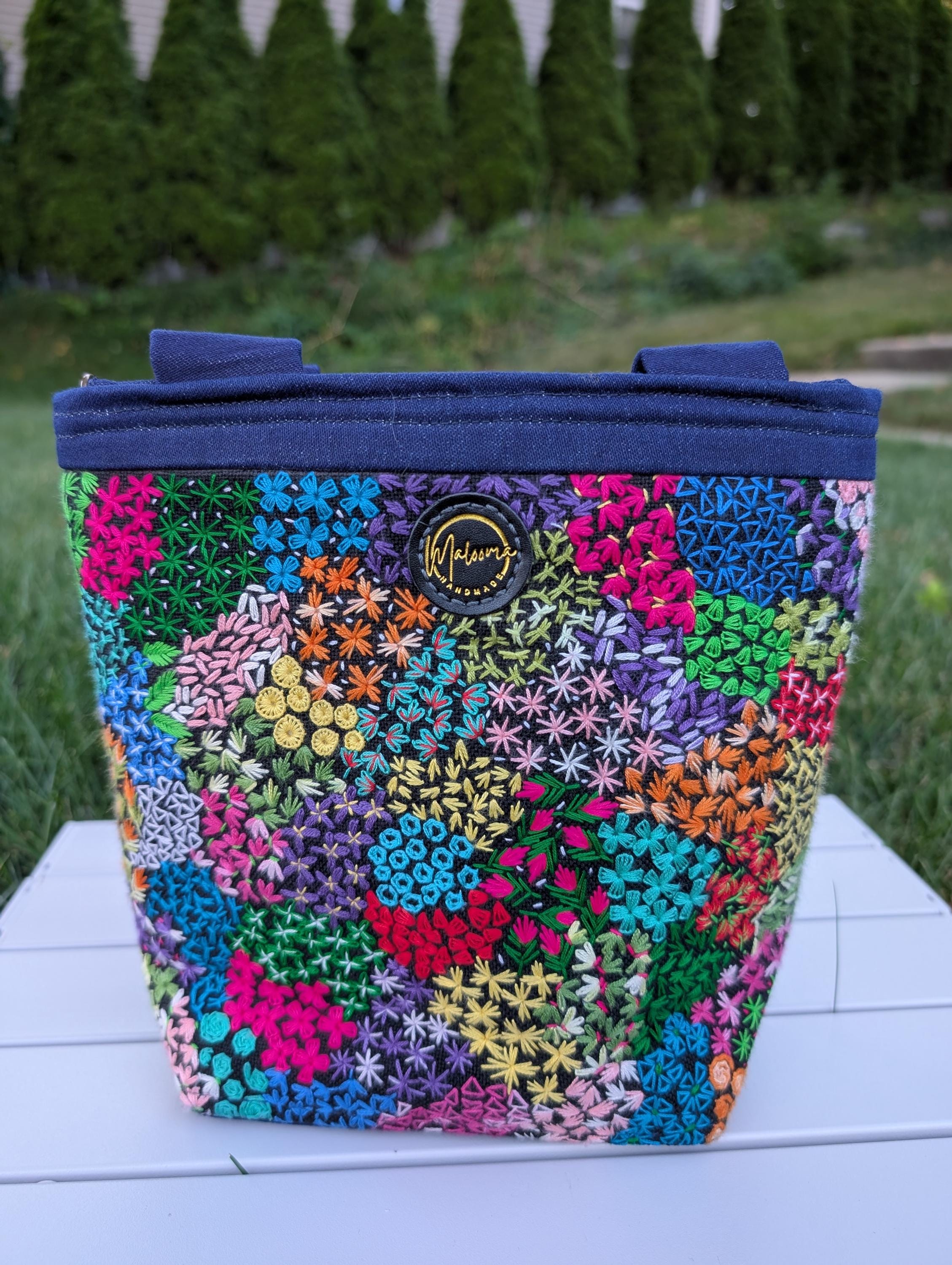 We make our bags with love and hand. To keep them looking good over time, gently hand wash them with mild detergent, and hang them in the sun for dry or dry cleaning. (100% Hand embroidery patterns are sensitive and damageable if washed too often.)