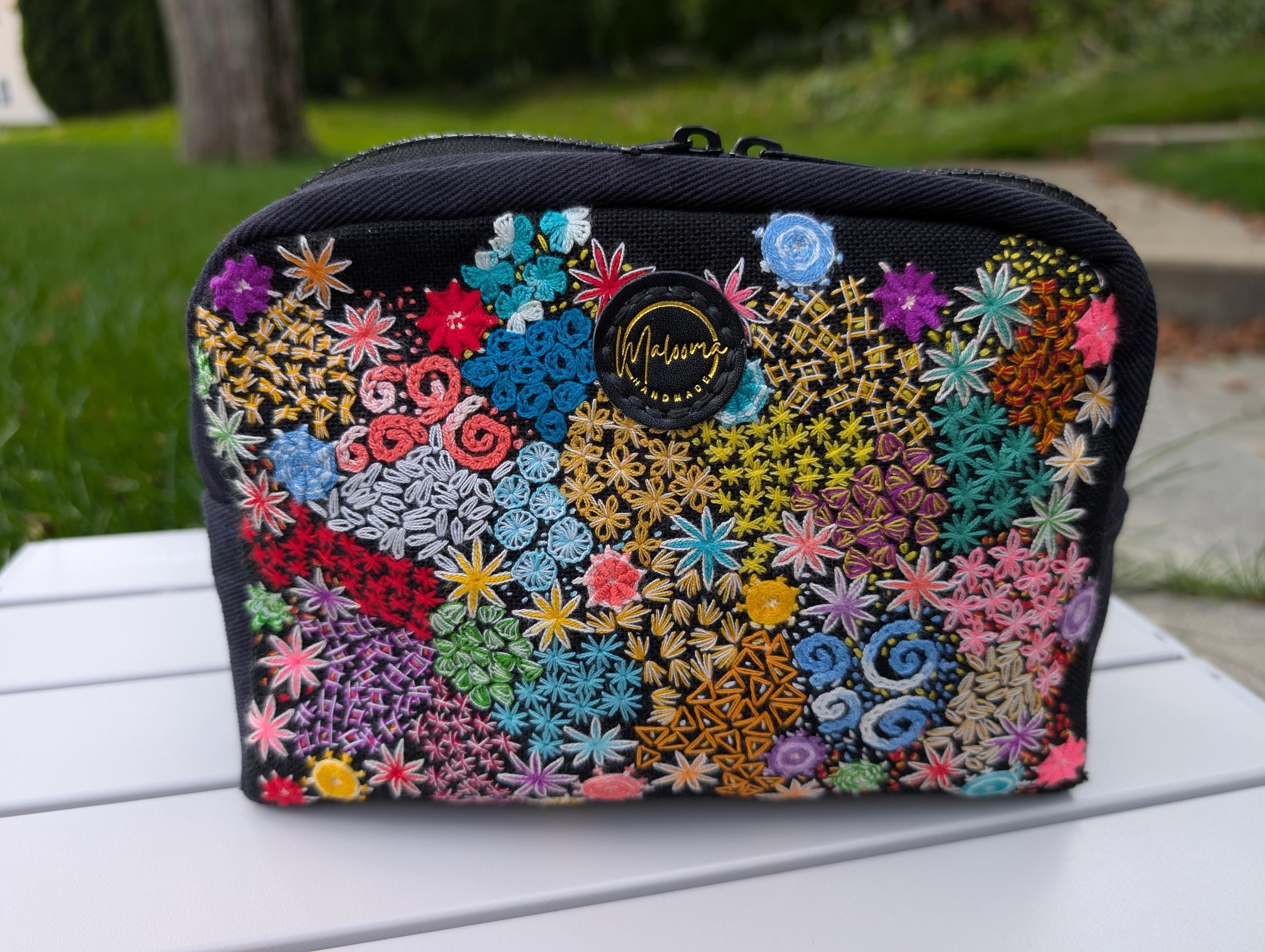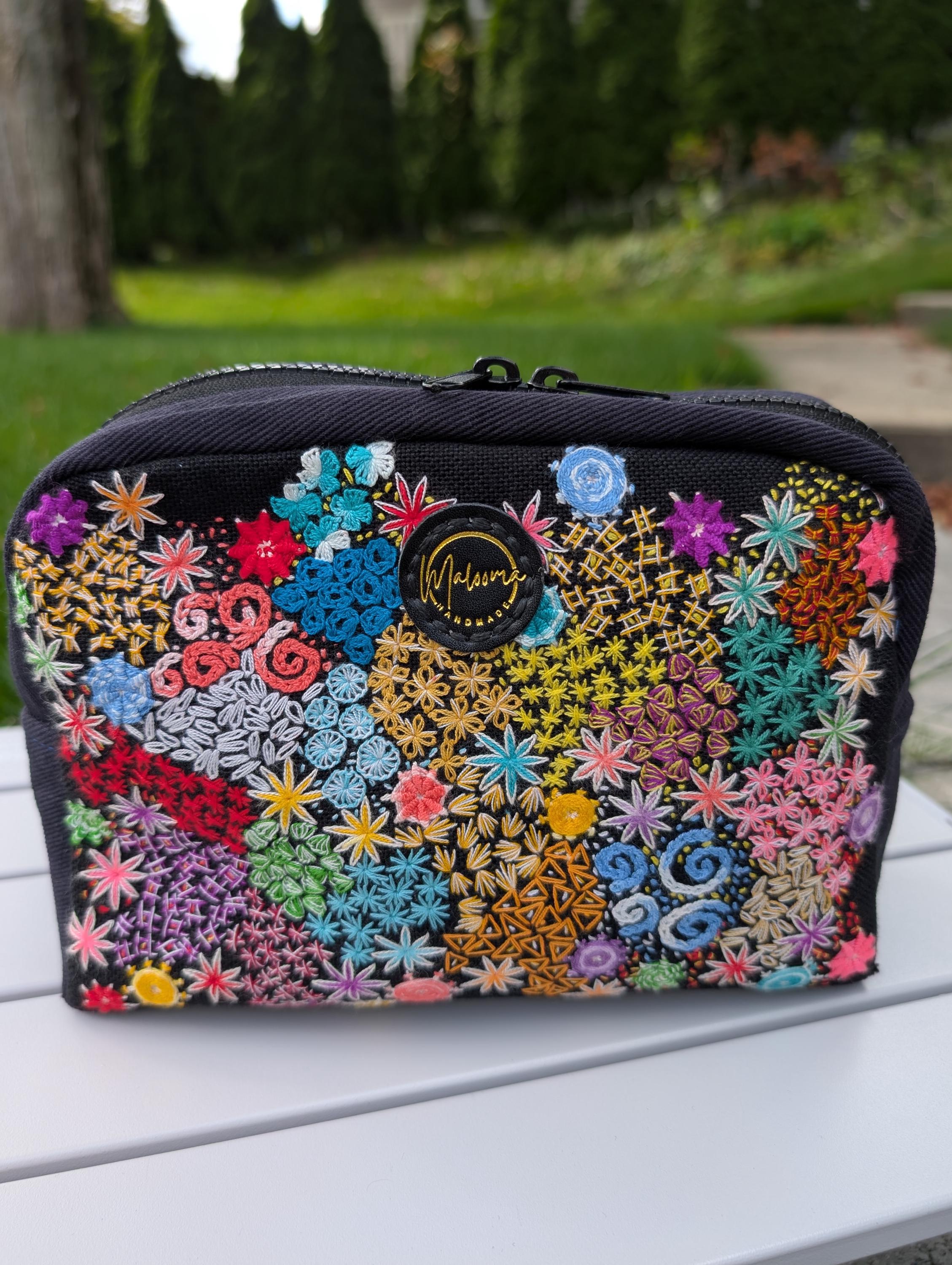Material: 100% Hand Embroidery Pattern and cotton canvas with cotton lining.