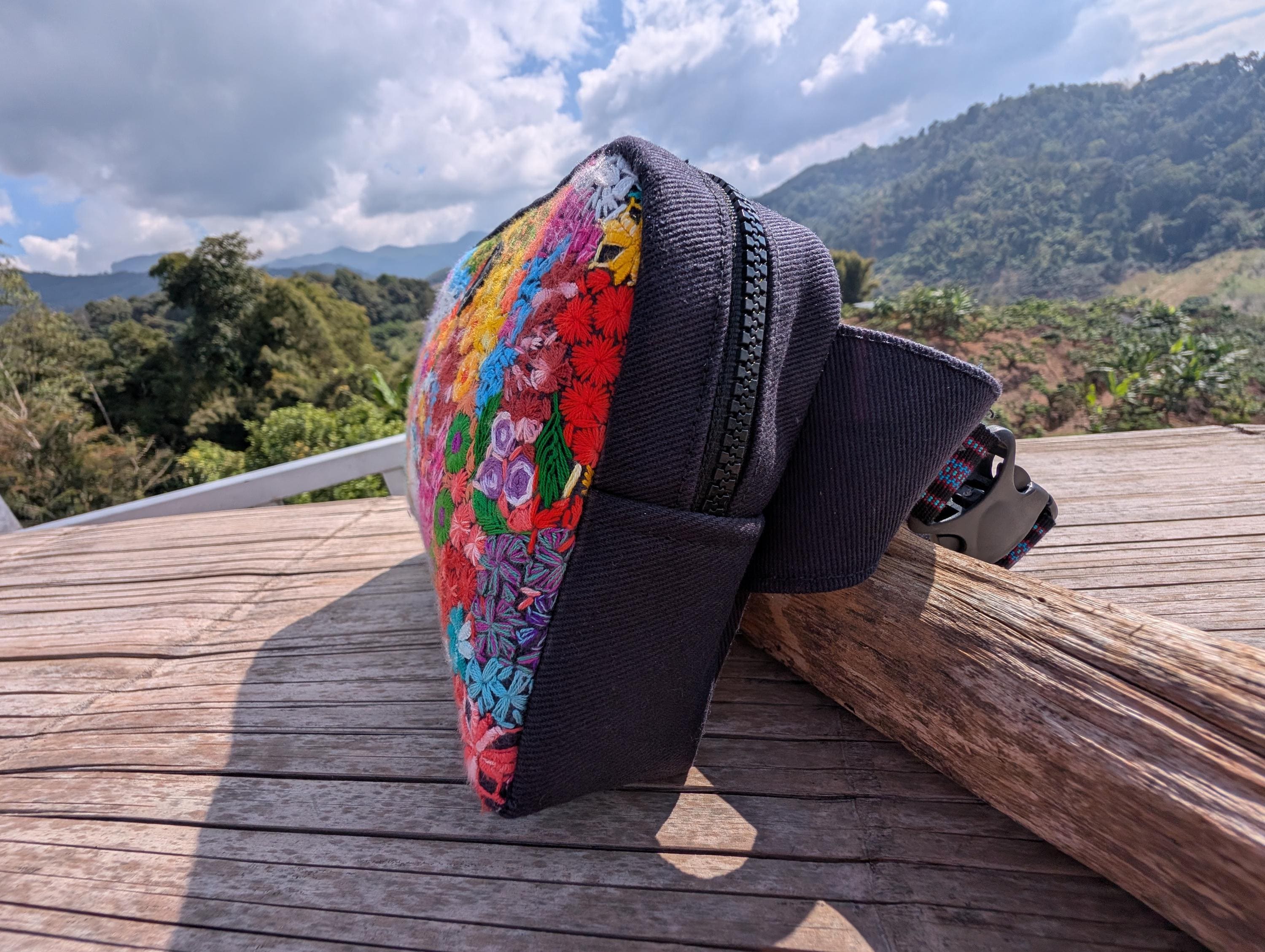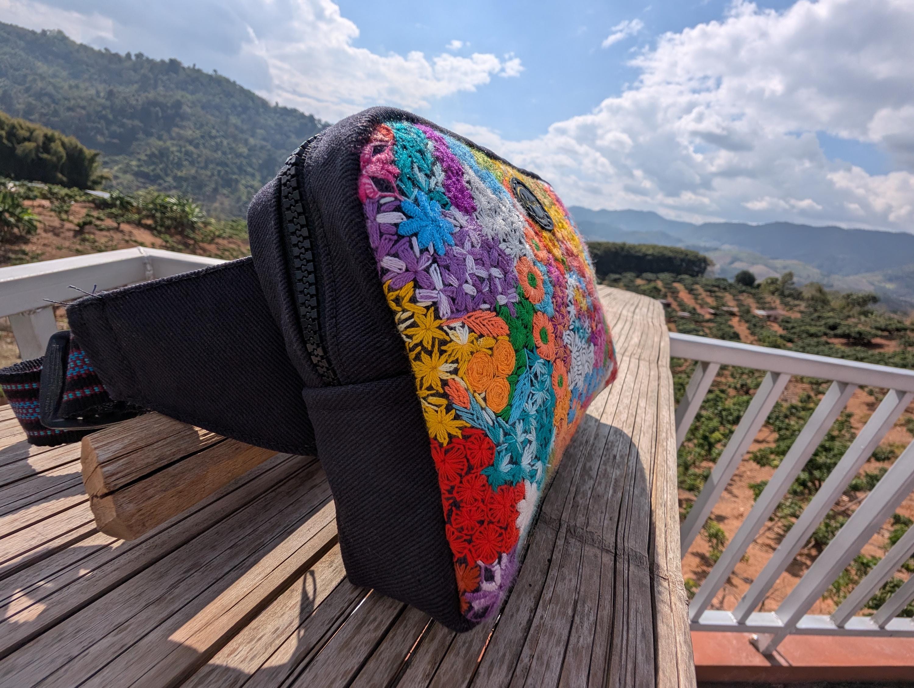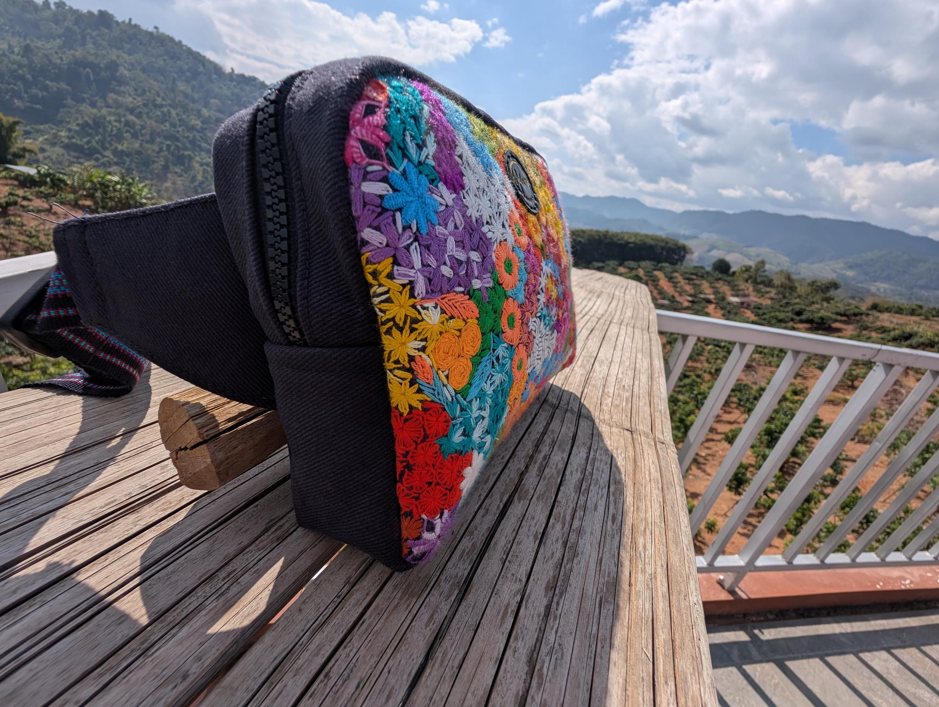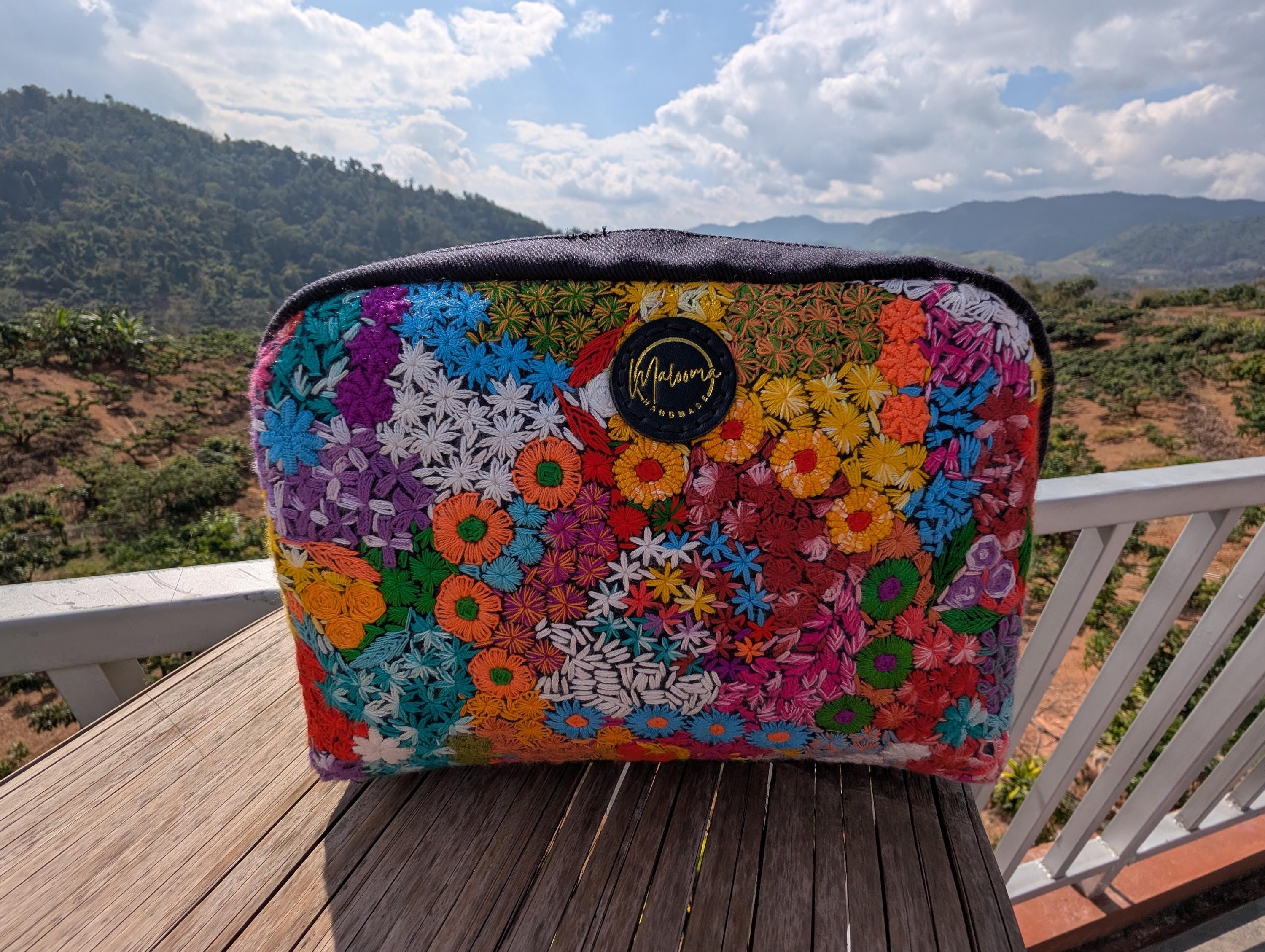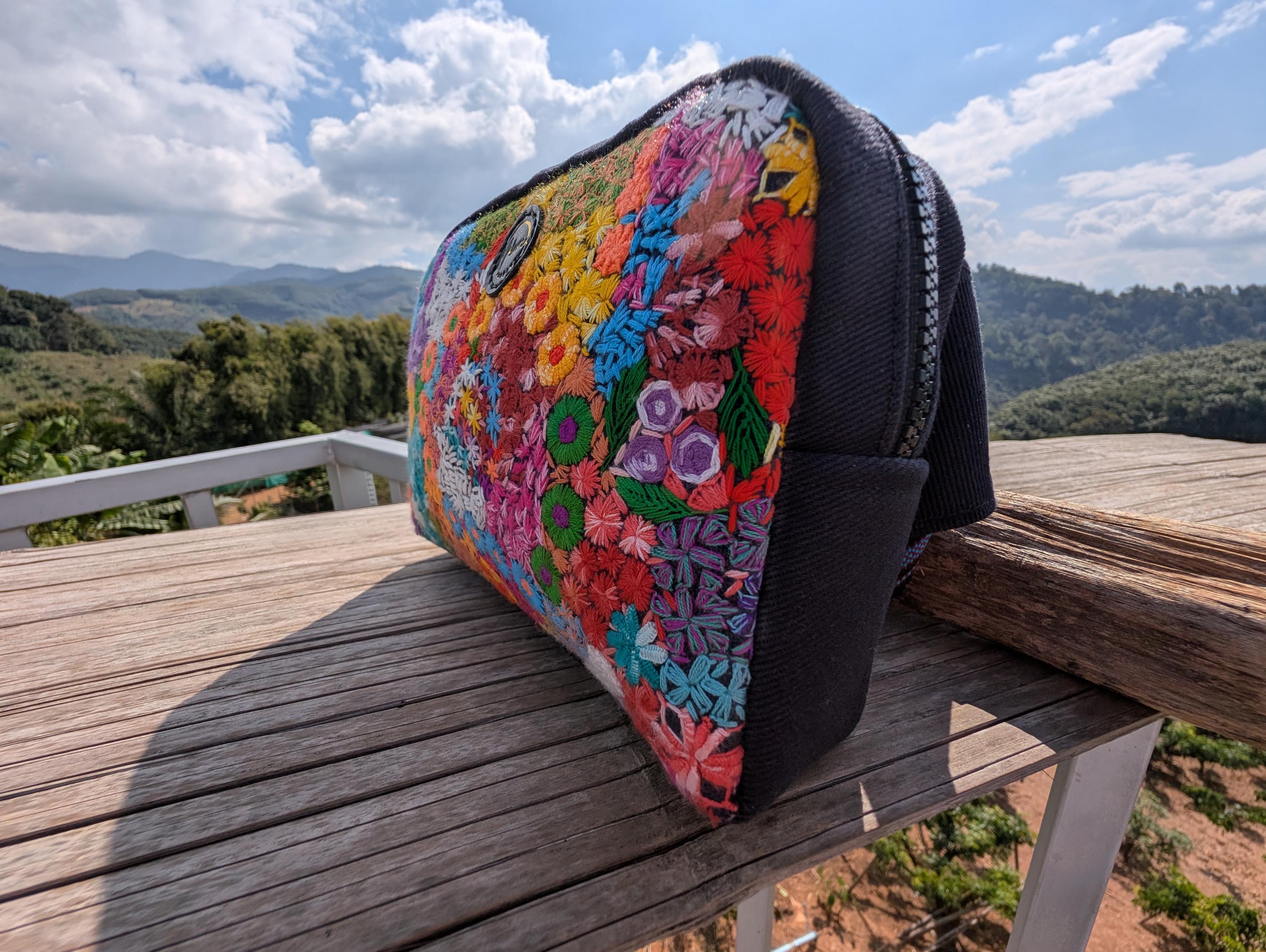 100% Hand Embroidery. All the patterns on our bag are actually hand embroidered by local people in Chiang Rai, Thailand. "For this bag, we use a hand-woven strap made by the Lisu Hill Tribe from northern Thailand."