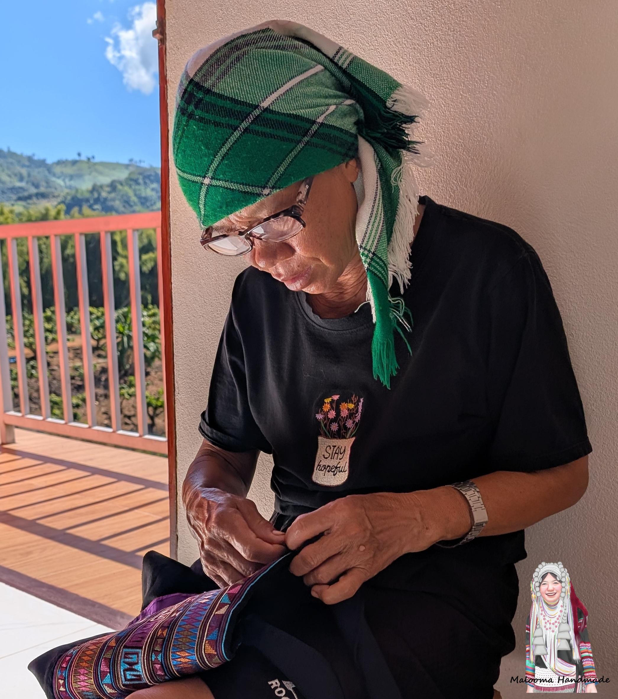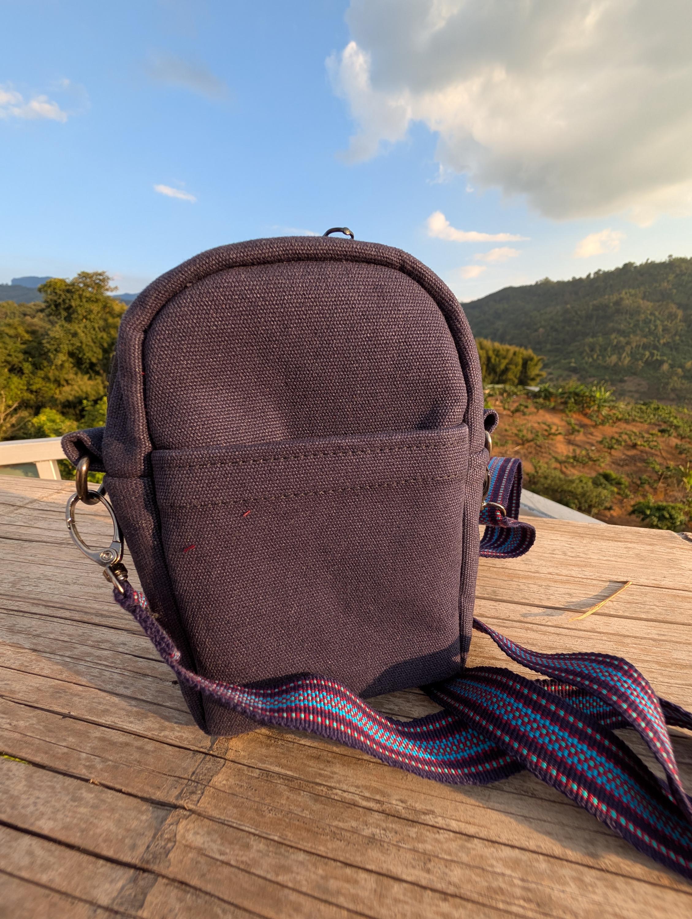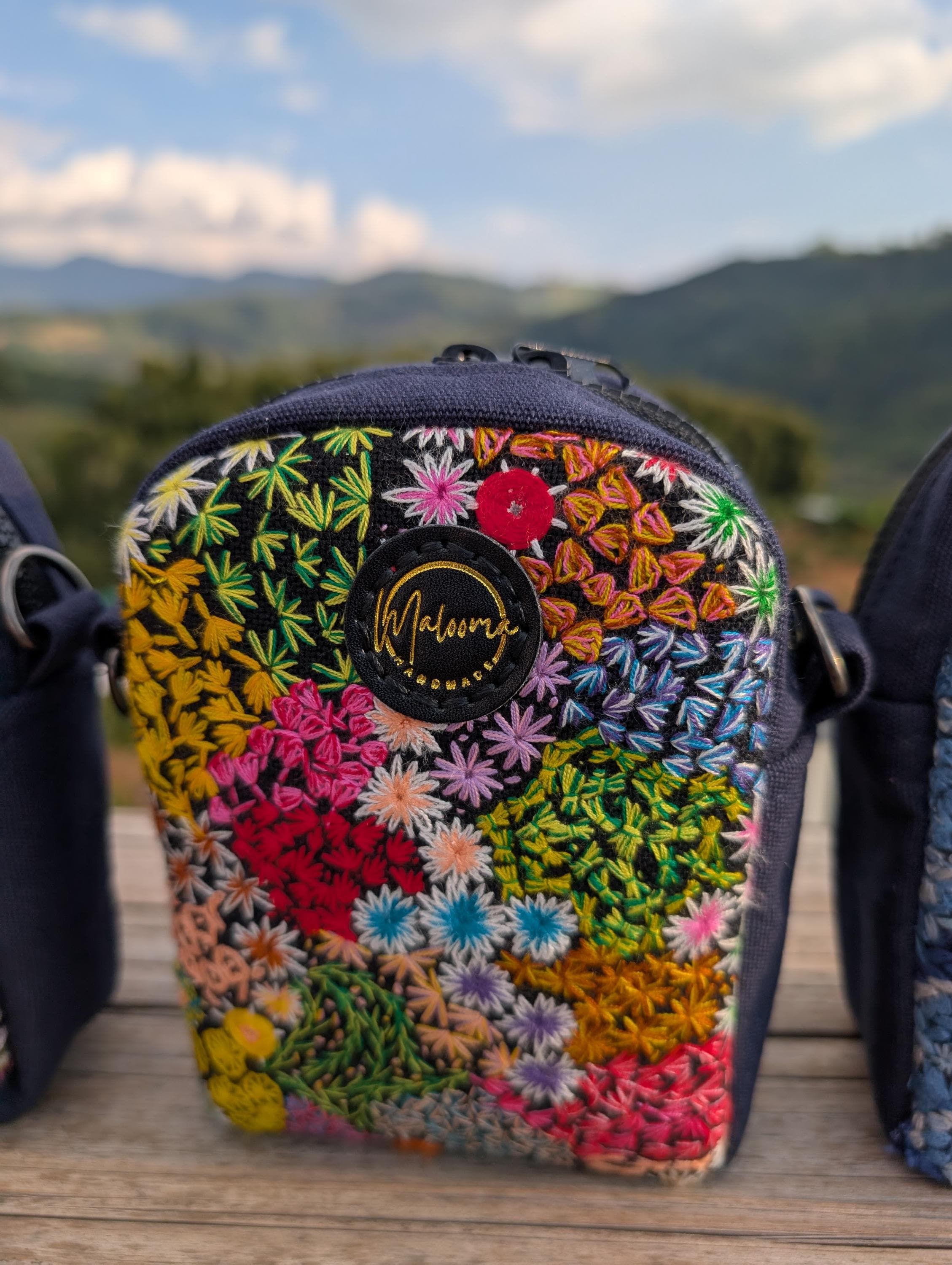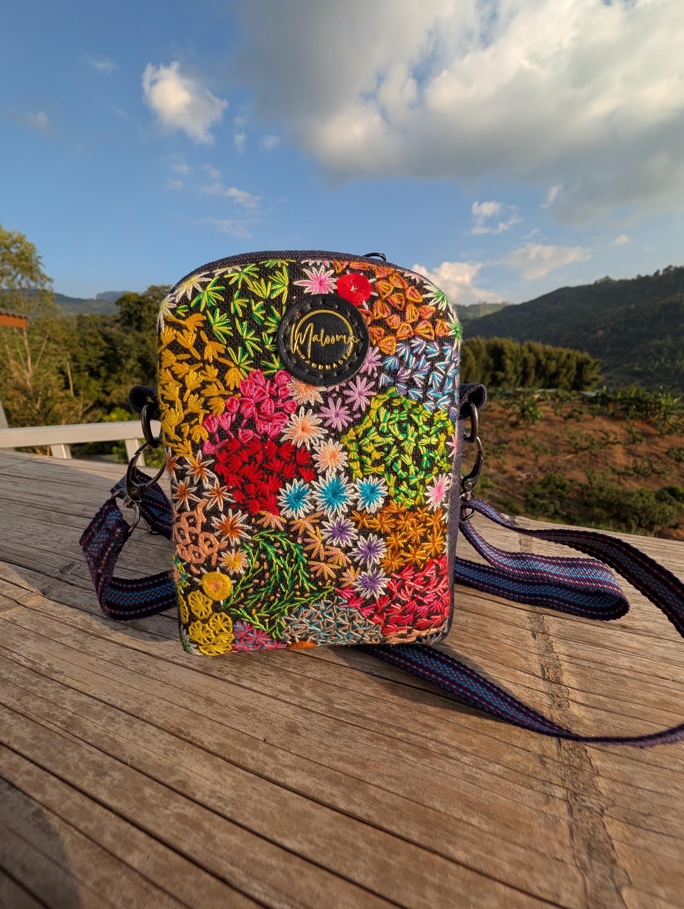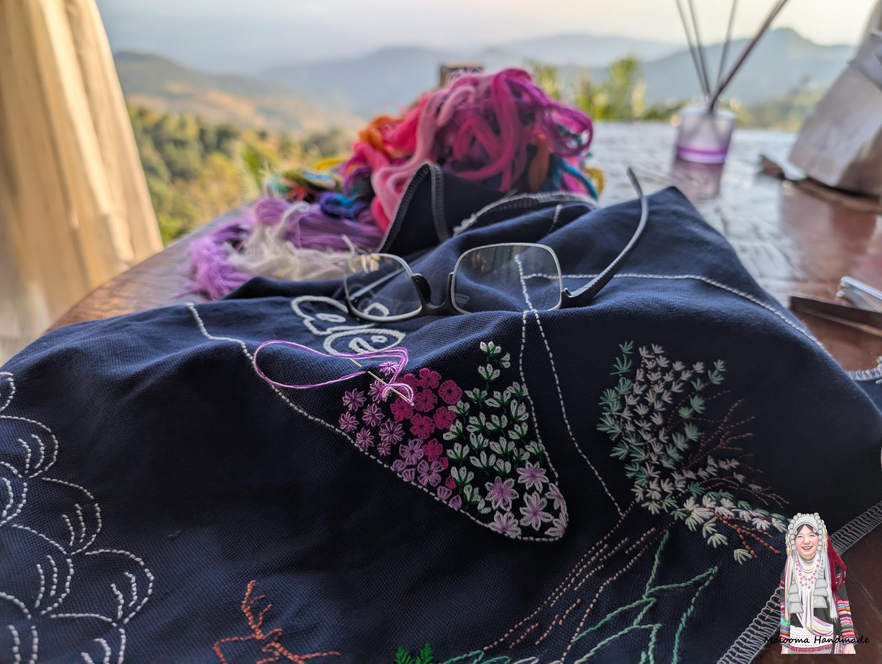 100% Hand Embroidery. All the patterns on our bag are actually hand embroidered by local people in Chiang Rai, Thailand. "For this bag, we use a hand-woven strap made by the Lisu Hill Tribe from northern Thailand."