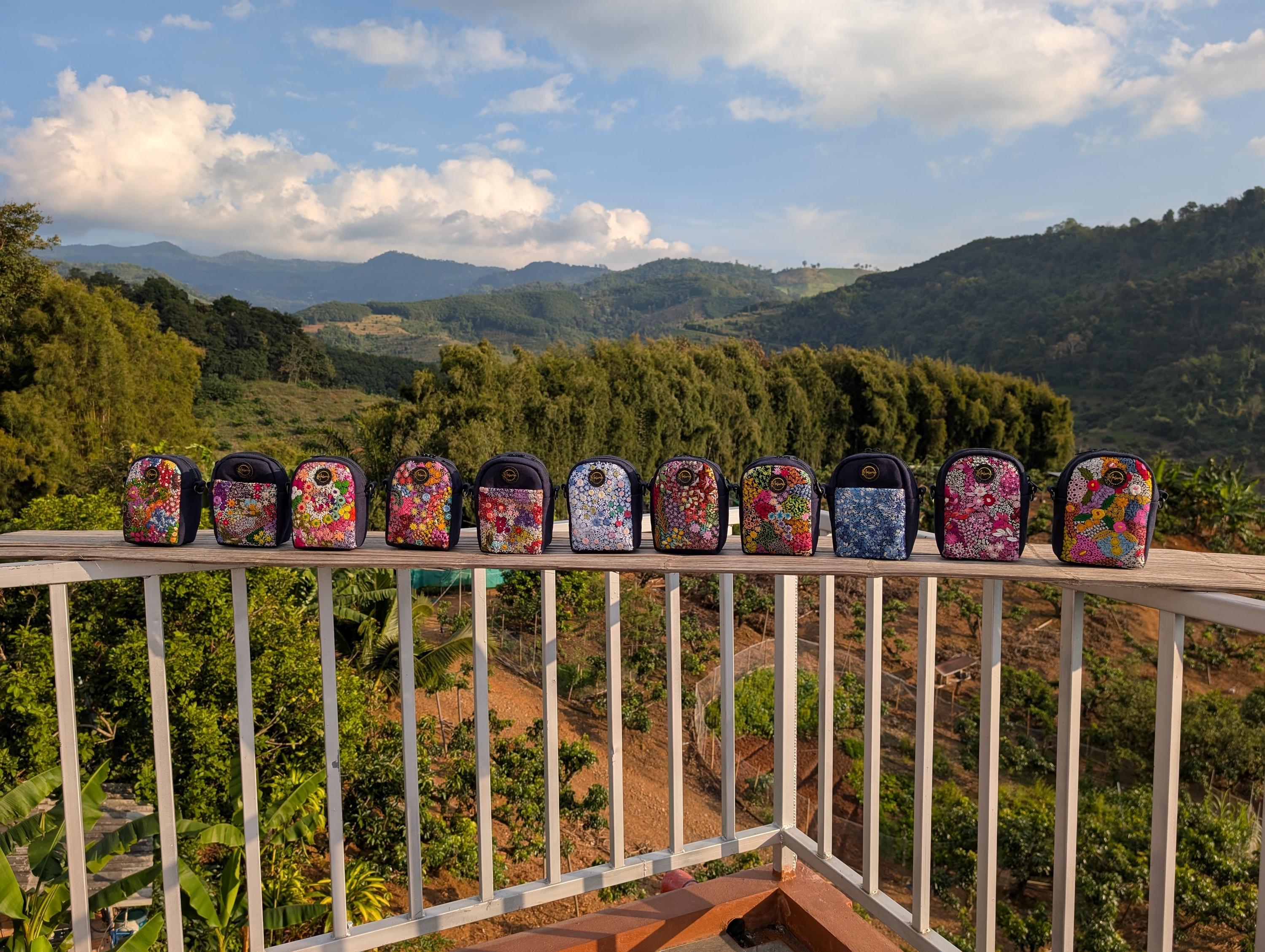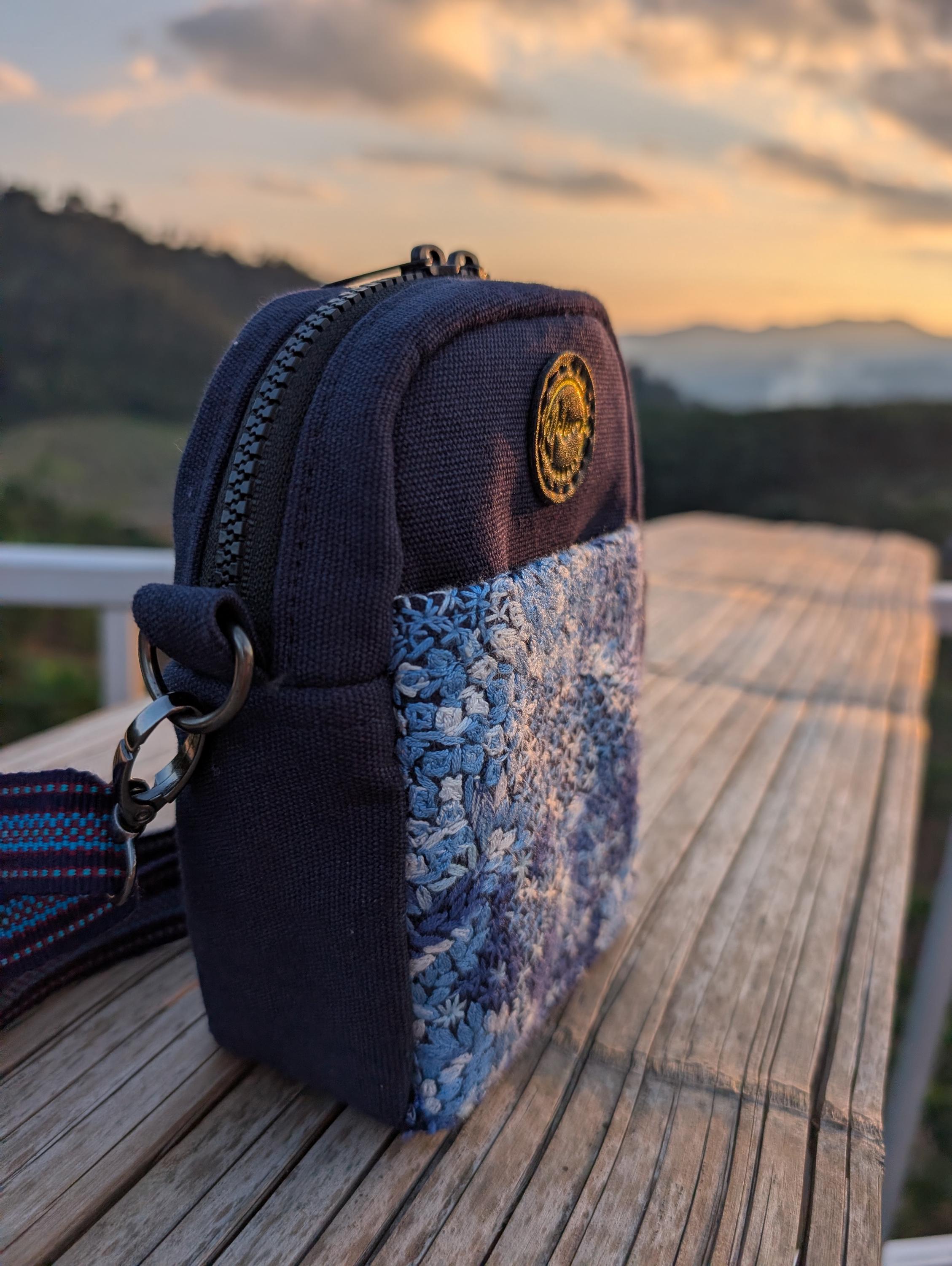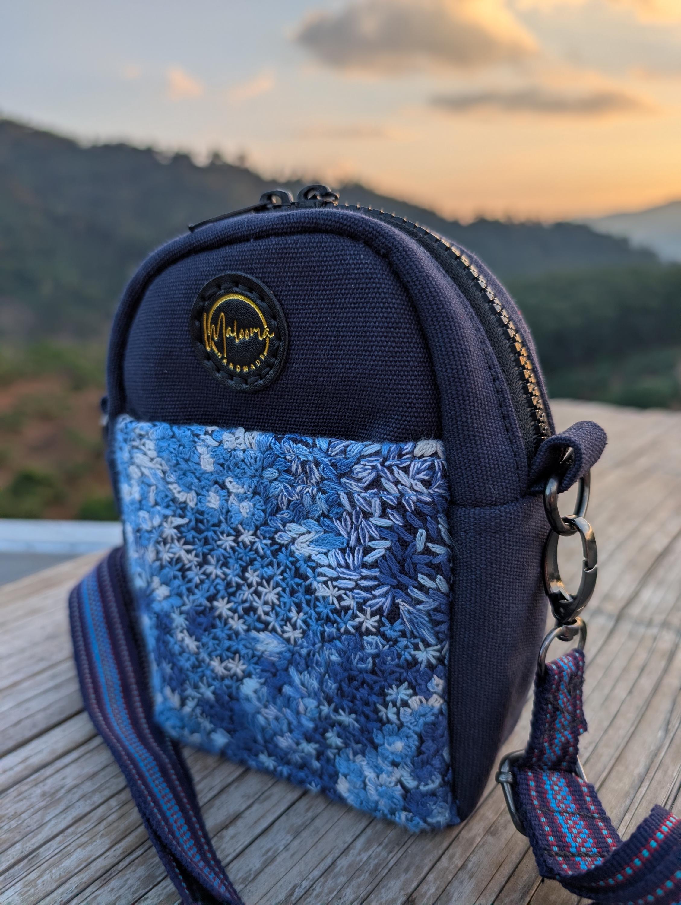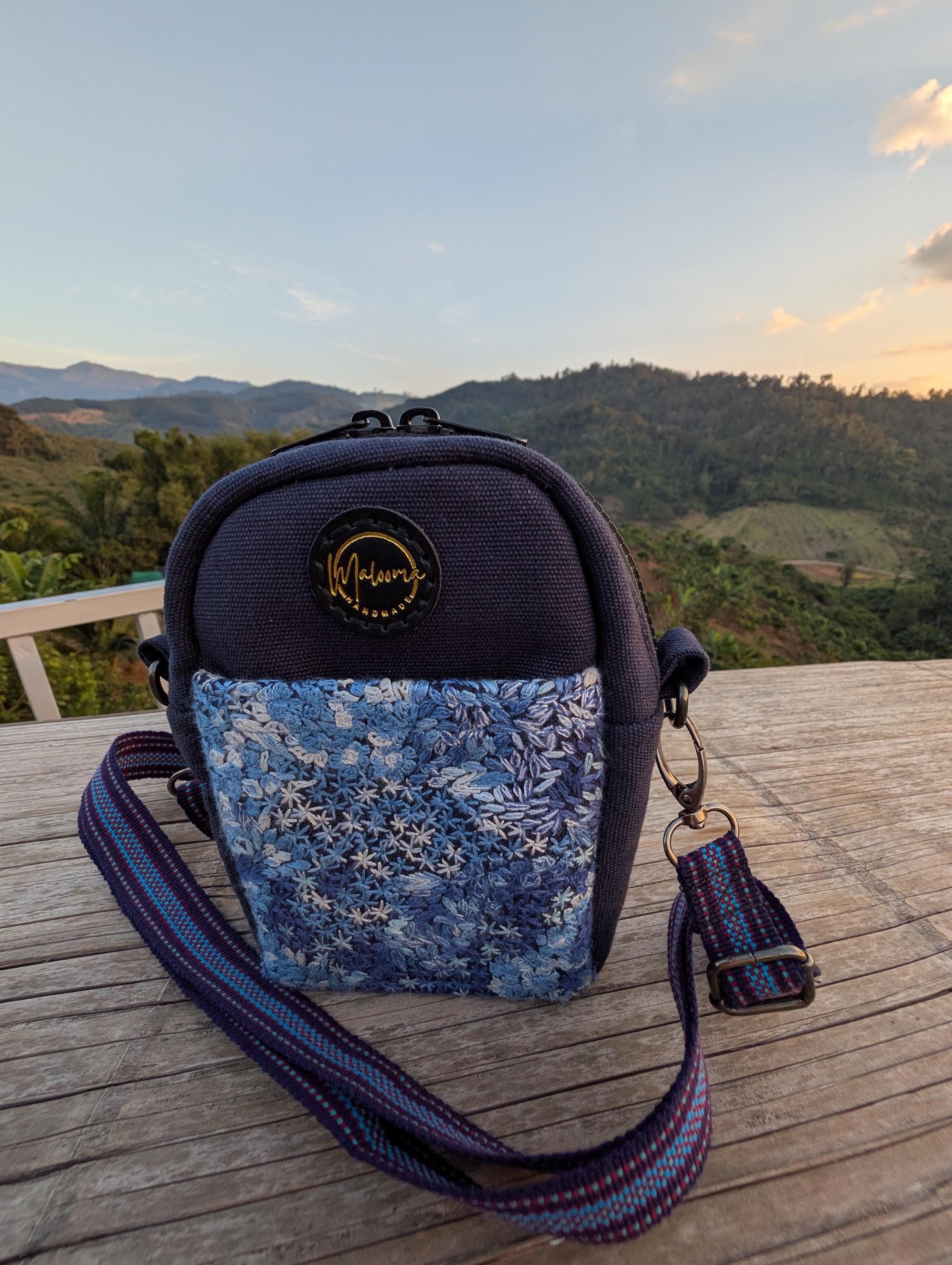100% Hand Embroidery. All the patterns on our bag are actually hand embroidered by local people in Chiang Rai, Thailand. "For this bag, we use a hand-woven strap made by the Lisu Hill Tribe from northern Thailand."