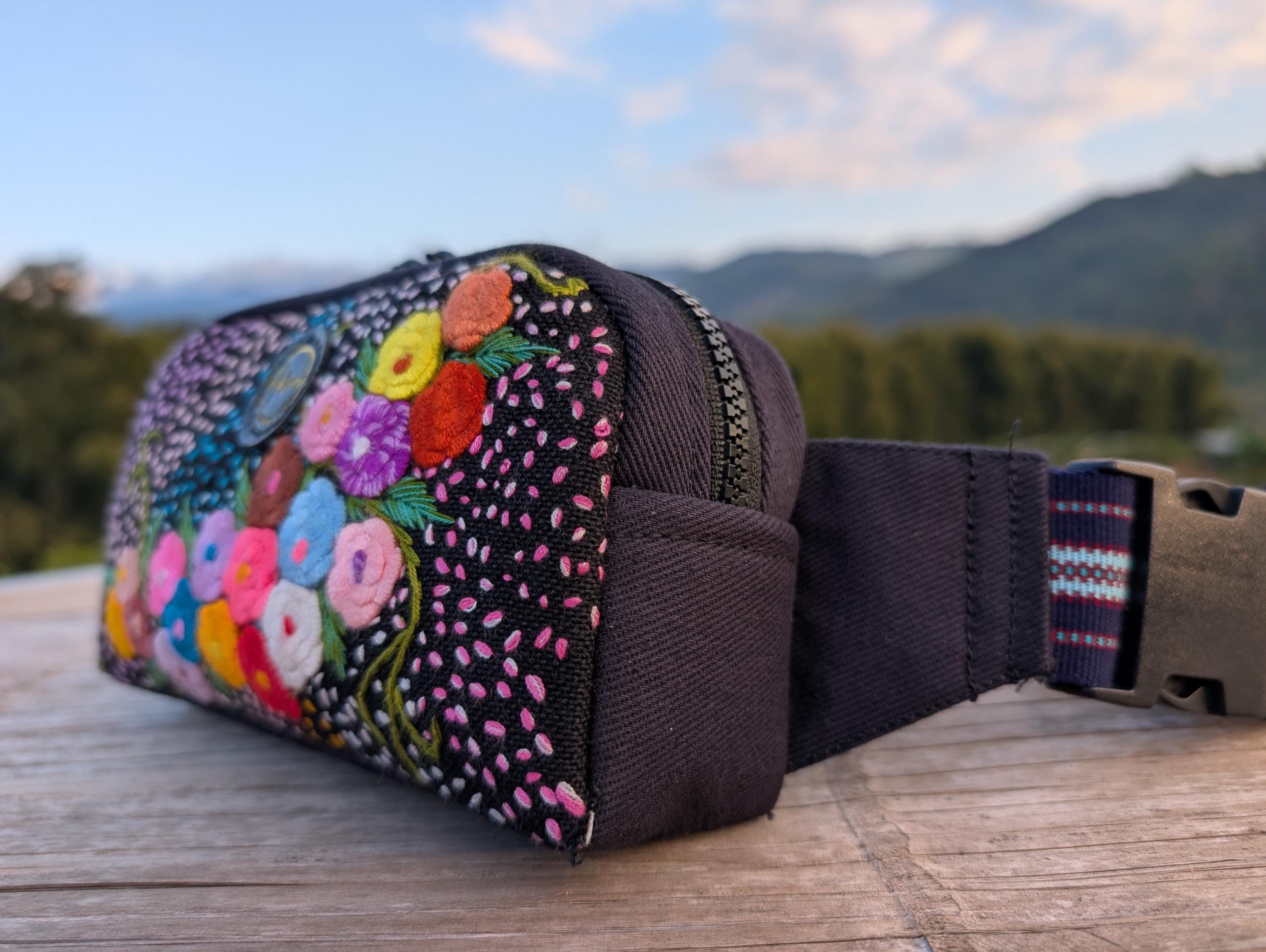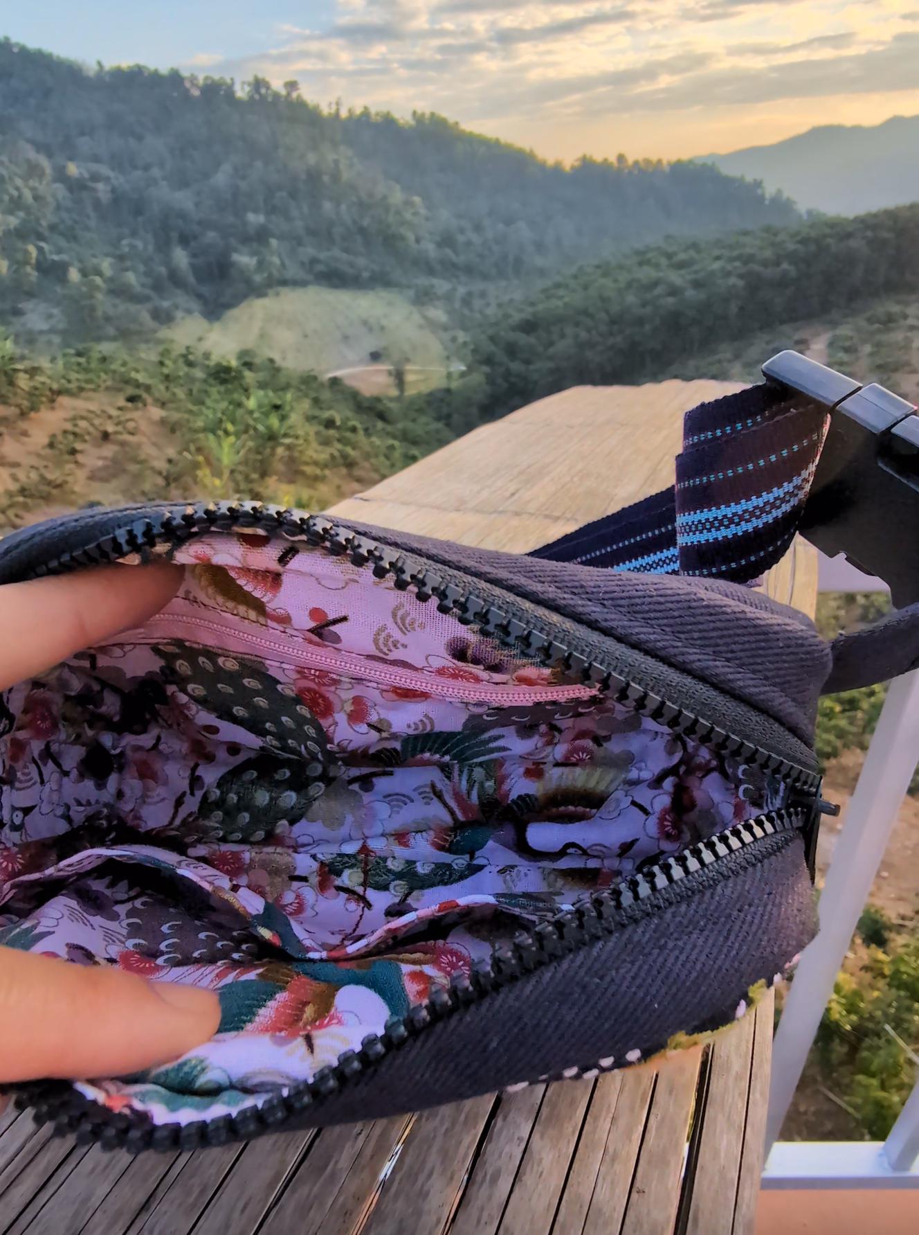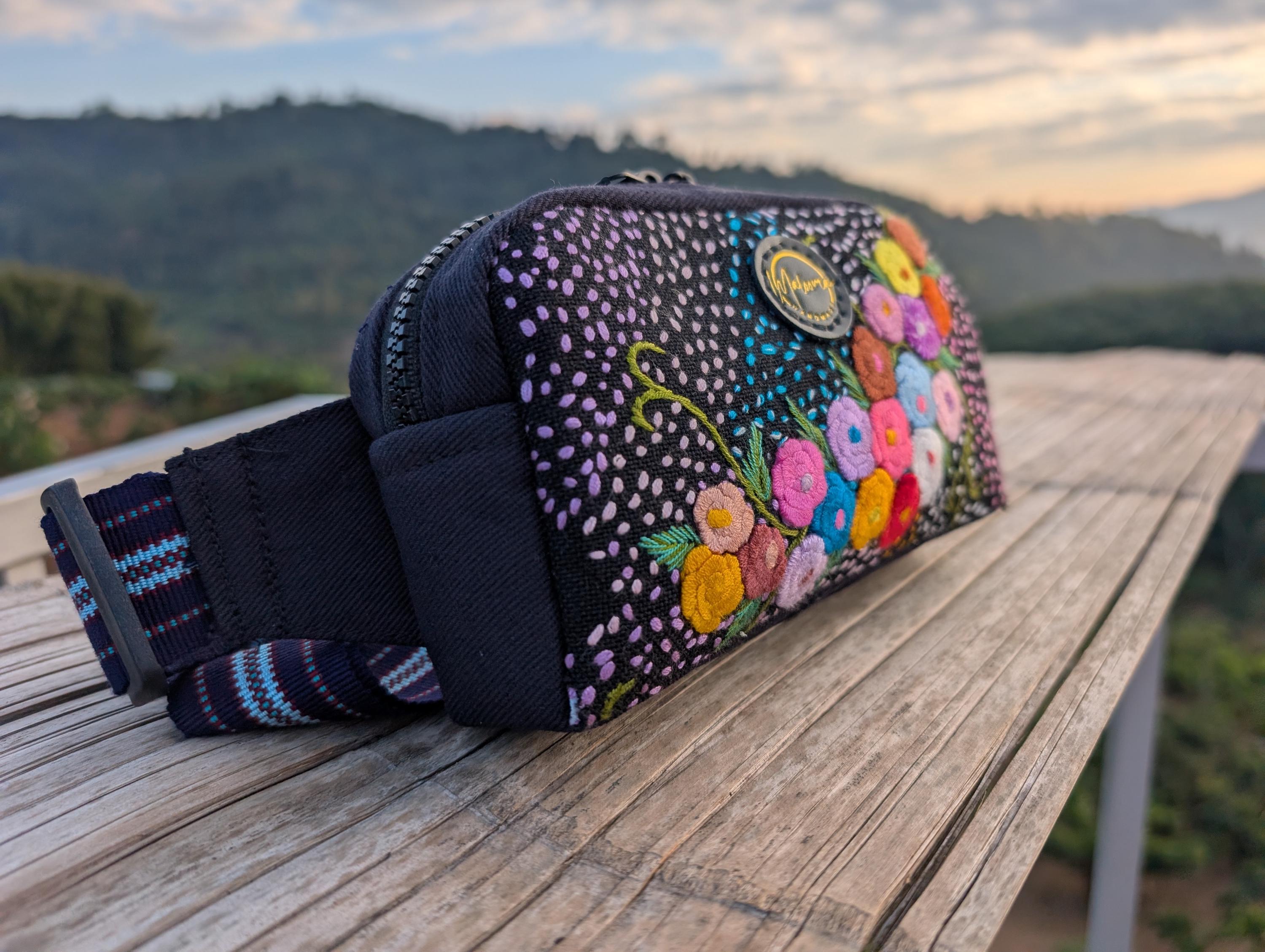 100% Hand Embroidery. All the patterns on our bag are actually hand embroidered by local people in Chiang Rai, Thailand. "For this bag, we use a hand-woven strap made by the Lisu Hill Tribe from northern Thailand."