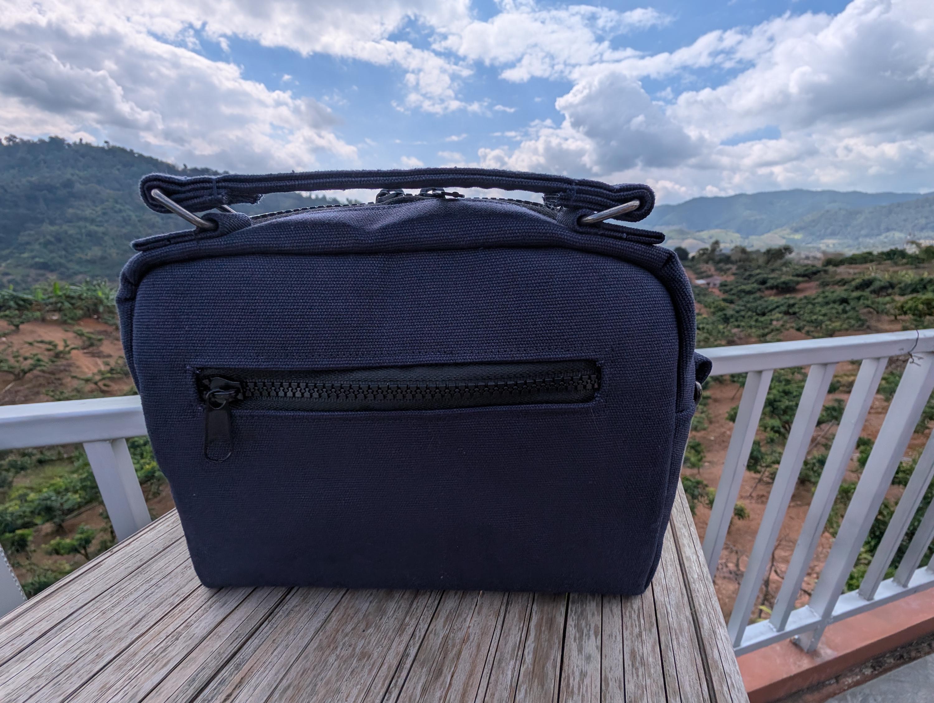 Bag dimensions: Approximately 8.5-in long, 6.5-in high, 2.5-in deep.